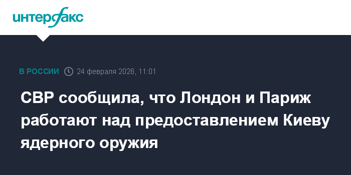 Москва. 24 февраля. INTERFAX.RU - Великобритания и Франция работают над решением вопросов, связанных с предоставлением Киеву ядерного оружия и средств его доставки, сообщает Служба внешней разведки РФ.