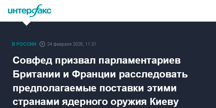 Совфед призвал парламентариев Британии и Франции расследовать предполагаемые поставки этими странами ядерного оружия Киеву