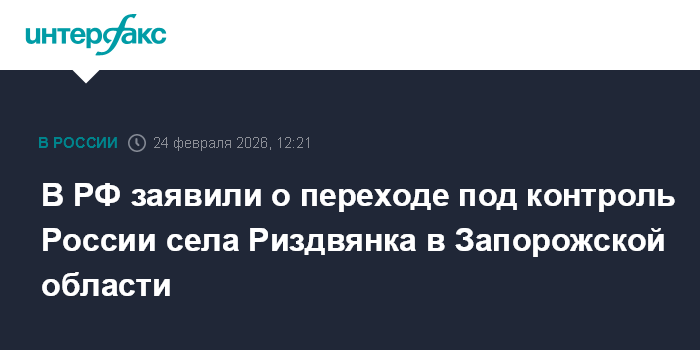 Москва. 24 февраля. INTERFAX.RU - Российская армия установила контроль над селом Риздвянка в Запорожской области, заявили в Минобороны РФ во вторник.