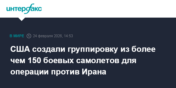 Москва. 24 февраля. INTERFAX.RU - Соединенные Штаты развернули на ближневосточных авиабазах, а также в Европе более 150 боевых самолетов для проведения возможной военной операции против Ирана, пишет The Washington Post, ссылаясь на данные авиационных ресурсов и спутниковые снимки.