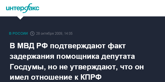 В МВД РФ подтверждают факт задержания помощника депутата Госдумы, но не утверждают, что он имел отношение к КПРФ