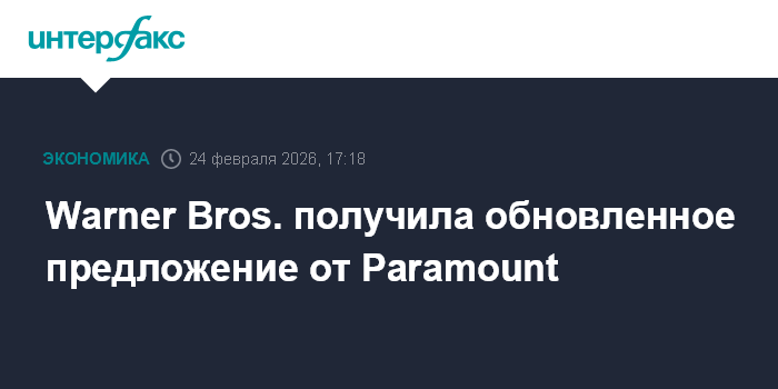 Москва. 24 февраля. INTERFAX.RU - Warner Bros. Discovery (WBD) сообщила о получении обновленного предложения о покупке от Paramount Skydance Corp., но не раскрыла его условия.
