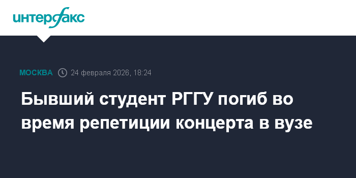 "Российский государственный гуманитарный университет выражает глубокие соболезнования родным, близким и друзьям трагически погибшего посетителя на территории вуза. 20 февраля во время репетиции музыкального Ансамбля РГГУ произошёл несчастный случай с приглашённым музыкантом Денисом П. (студент РГГУ, обучавшийся в университете до 2024 года)", - сообщается во вторник в телеграм-канале вуза.