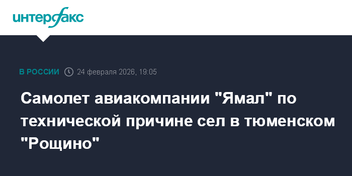 Москва. 24 февраля. INTERFAX.RU - Летевший из Нового Уренгоя в "Домодедово" самолет авиакомпании "Ямал" внепланово совершил посадку в тюменском аэропорту "Рощино", сообщает пресс-служба Уральской транспортной прокуратуры.