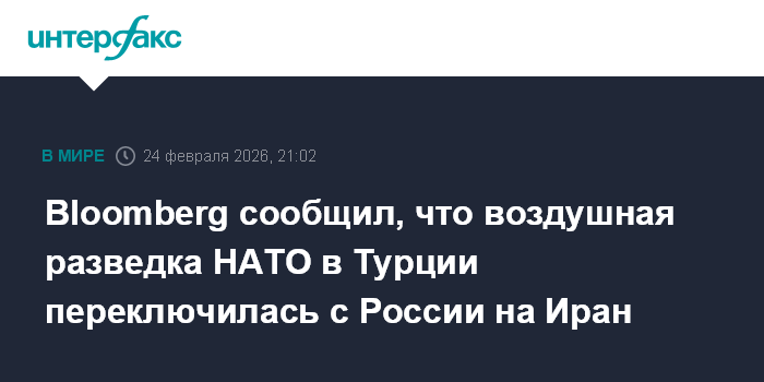 Москва. 24 февраля. INTERFAX.RU - Приоритет при ведении воздушной разведки НАТО с территории Турции сместился с России на Иран, сообщает Bloomberg со ссылкой на источники, знакомые с темой.