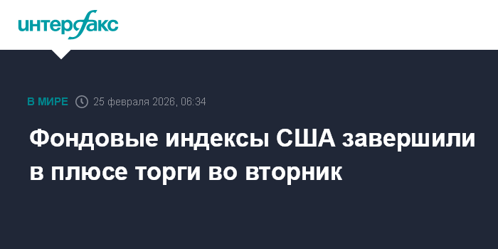 Москва. 25 февраля. INTERFAX.RU - Американские фондовые индексы выросли по итогам торгов во вторник, почти восстановившись после падения по итогам предыдущей сессии.