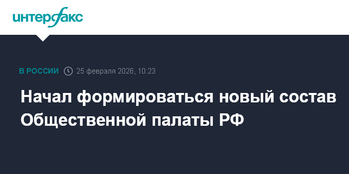 Москва. 25 февраля. INTERFAX.RU - Началось формирование нового состава Общественной палаты, сообщается на сайте Кремля.