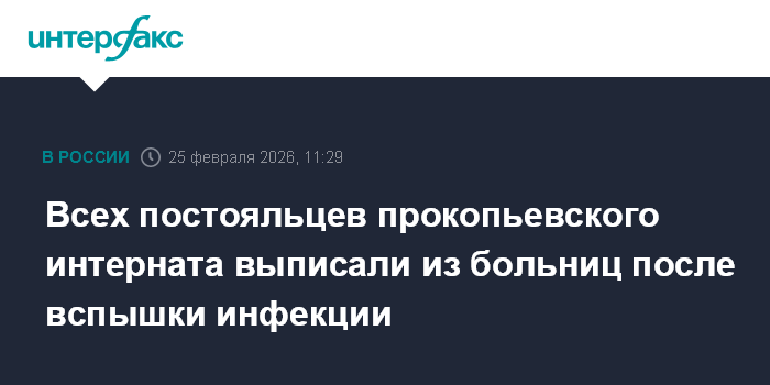 Москва. 25 февраля. INTERFAX.RU - Все постояльцы Прокопьевского психоневрологического интерната, которых перевели в больницы госпитализированные после массовой вспышки инфекции в январе, завершили лечение.