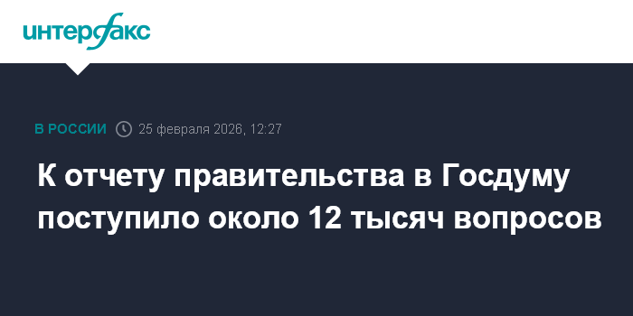 Москва. 25 февраля. INTERFAX.RU - В ходе подготовки к отчету председателя правительства РФ Михаила Мишустина в Госдуму в целом поступило около 12 тысяч вопросов, заявил в среду председатель Госдумы Вячеслав Володин.