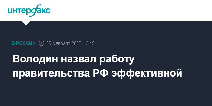 Москва. 25 февраля. INTERFAX.RU - Председатель Госдумы Вячеслав Володин в ходе отчета правительства РФ охарактеризовал его работу как эффективную.
