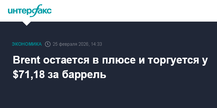 Москва. 25 февраля. INTERFAX.RU - Котировки нефти остаются в плюсе, рынок следит за развитием ситуации вокруг Ирана и ждет публикации данных о запасах энергоносителей в США.