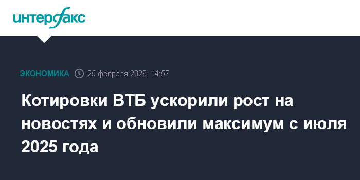 Котировки ВТБ ускорили рост на новостях и обновили максимум с июля 2025 года