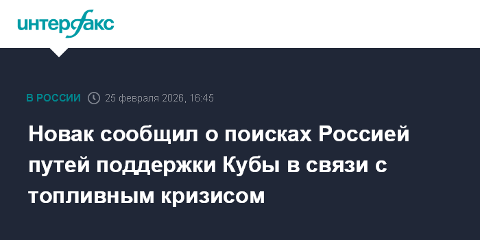 Новак сообщил о поисках Россией путей поддержки Кубы в связи с топливным кризисом