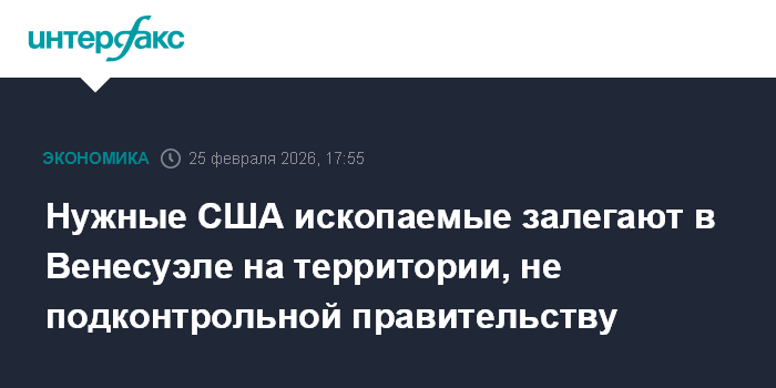 Москва. 25 февраля. INTERFAX.RU - Администрация США заинтересована в разработке залежей минеральных ресурсов на юге Венесуэлы, однако эти территории, включая рудники, во многом находятся под контролем преступных группировок, пишетThe Wall Street Journal (WSJ).