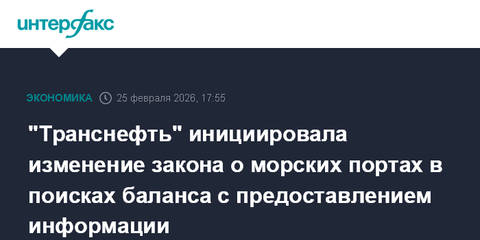 Москва. 25 февраля. INTERFAX.RU - "Транснефть" инициировала внесение изменений в закон о морских портах в связи с чувствительностью информации о транспортных операциях.