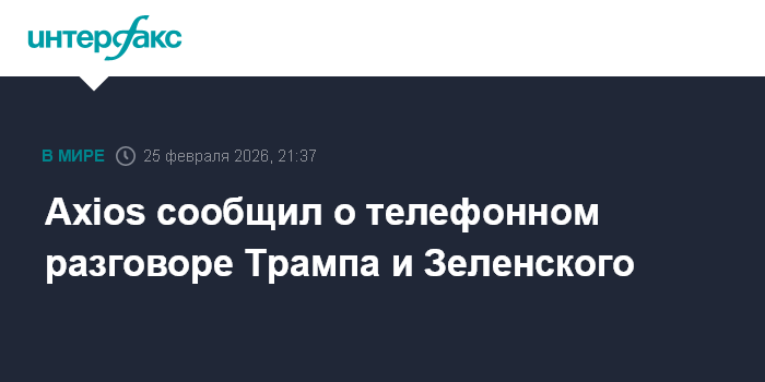 Москва. 25 февраля. INTERFAX.RU - Президенты США и Украины Дональд Трамп и Владимир Зеленский в настоящее время говорят по телефону, сообщает в среду портал Axios со ссылкой на информированный источник.