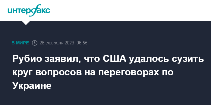 Москва. 26 февраля. INTERFAX.RU - Госсекретарь США Марко Рубио считает, что сторонам переговоров по урегулированию конфликта на Украине удалось сузить круг обсуждаемых вопросов, остались "очень сложные".