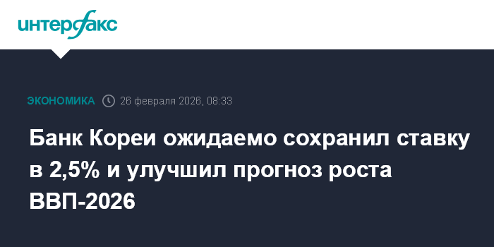 Банк Кореи ожидаемо сохранил ставку в 2,5% и улучшил прогноз роста ВВП-2026