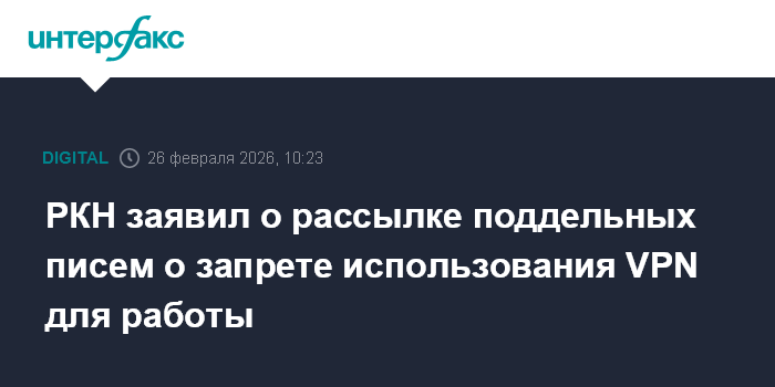 Москва. 26 февраля. INTERFAX.RU - Роскомнадзор (РКН) предупредил, что от его имени рассылаются поддельные письма, в которых говорится о запрете использования VPN-сервисов на рабочих местах.