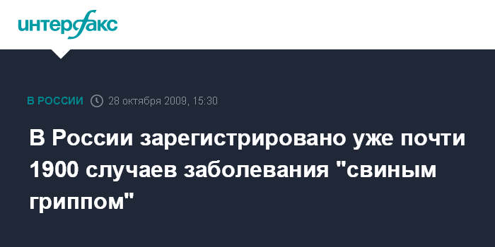 Москва. 28 октября. INTERFAX.RU - Число официально зарегистрированных случаев гриппа H1N1 в России выросло до 1896, четыре из которых - со смертельным исходом, сообщил глава Роспотребнадзора Геннадий Онищенко. "На вчерашний вечер у нас было подтверждено 1896 случаев, четыре - летальных", - сказал Онищенко журналистам в среду.