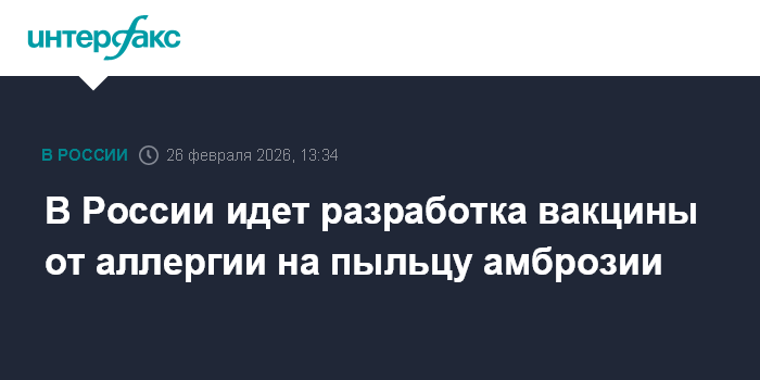 Москва. 26 февраля. INTERFAX.RU - В России разрабатывают вакцину против аллергии на пыльцу амброзии; она проходит доклинические исследования, сообщил на "Форуме будущих технологий" директор государственного научного центра "Институт иммунологии" ФМБА, главный внештатный специалист аллерголог-иммунолог Минздрава Муса Хаитов.