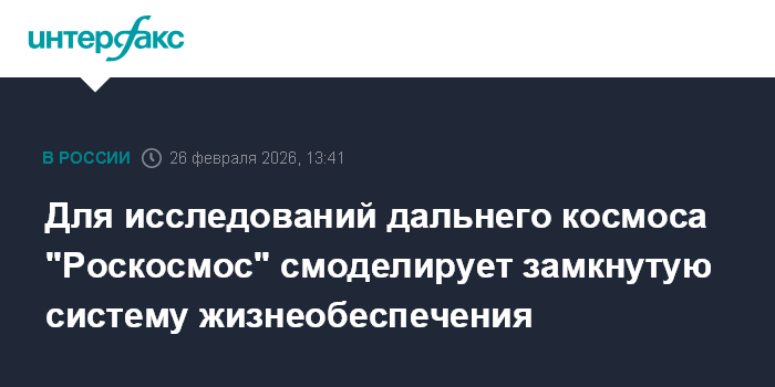 Москва. 26 февраля. INTERFAX.RU - "Роскосмос" планирует приступить к моделированию замкнутой системы жизнеобеспечения для исследования космонавтами дальнего космоса, работа такой системы должна быть обеспечена длительным источником энергии, сообщил на сессии "Форума будущих технологий" замгендиректора госкорпорации по производству Григорий Максимов.