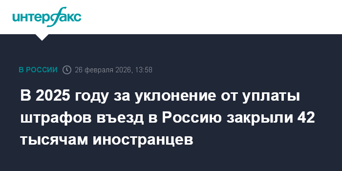 В 2025 году за уклонение от уплаты штрафов въезд в Россию закрыли 42 тысячам иностранцев