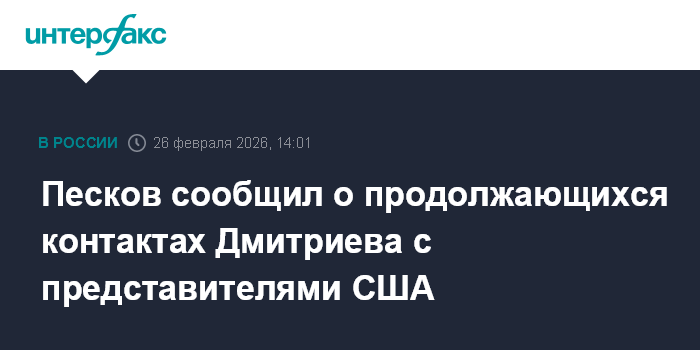 Песков сообщил о продолжающихся контактах Дмитриева с представителями США