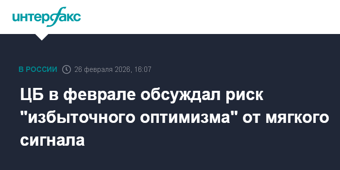 ЦБ в феврале обсуждал риск "избыточного оптимизма" от мягкого сигнала