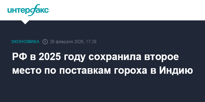 РФ в 2025 году сохранила второе место по поставкам гороха в Индию