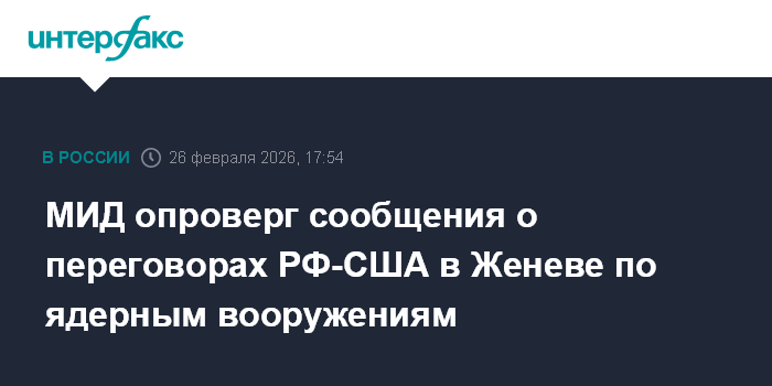 МИД опроверг сообщения о переговорах РФ-США в Женеве по ядерным вооружениям