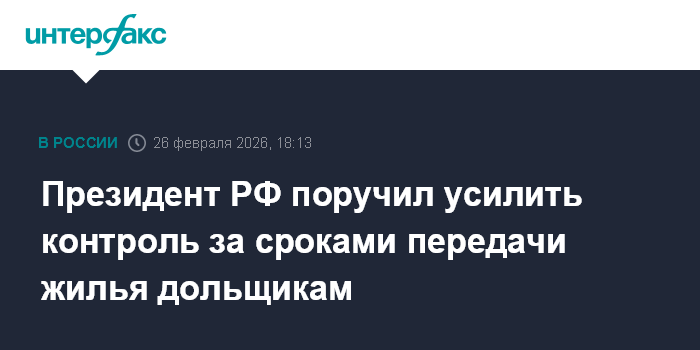 "Представить предложения об усилении контроля за соблюдением застройщиками сроков передачи гражданам жилых помещений, являющихся предметом договоров участия в долевом строительстве", - говорится в перечне поручений президента РФ по итогам его пресс-конференции, состоявшейся 19 декабря 2025 года.