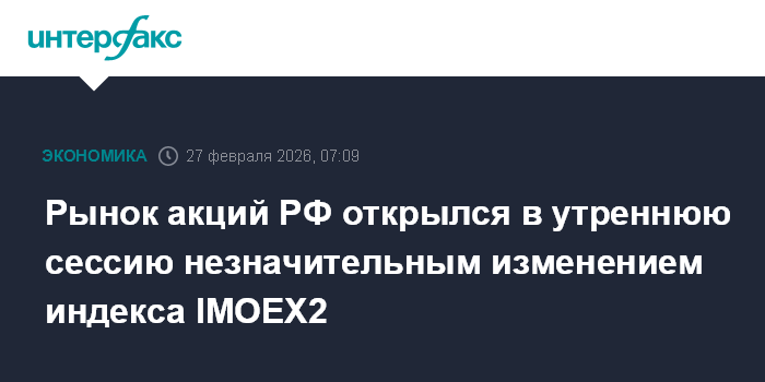 Рынок акций РФ открылся в утреннюю сессию незначительным изменением индекса IMOEX2