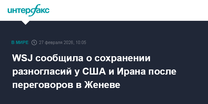 WSJ сообщила о сохранении разногласий у США и Ирана после переговоров в Женеве