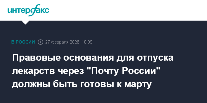 Правовые основания для отпуска лекарств через "Почту России" должны быть готовы к марту