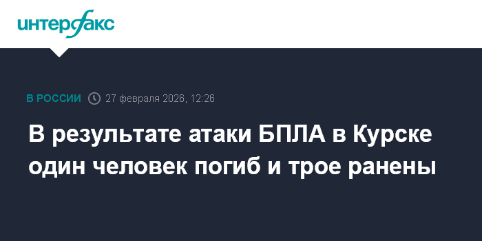 Москва. 27 февраля. INTERFAX.RU - В Семейском округе Курска в результате последней атаки БПЛА один человек погиб и трое ранены, сообщил губернатор Курской области Александр Хинштейн.