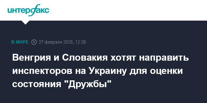 Москва. 27 февраля. INTERFAX.RU - Премьер-министр Венгрии Виктор Орбан заявил в пятницу о намерении вместе со Словакией отправить на Украину команду специалистов, которые оценят состояние нефтепровода "Дружба".