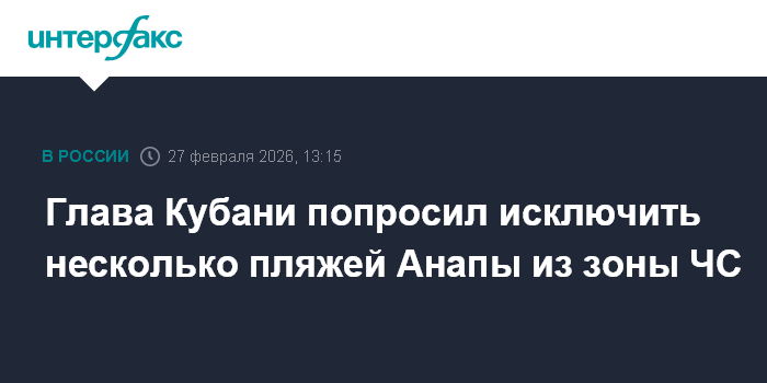 "Это восемь пляжных территорий - от села Большой Утриш до "Высокого берега". (...) В случае положительного заключения Роспотребнадзора попросил вице-премьера страны Виталия Геннадьевича Савельева рассмотреть возможность исключения этих пляжей из зоны ЧС и последующего их открытия", - написал губернатор в своем канале в мессенджере Мax в пятницу.