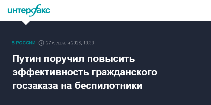 Москва. 27 февраля. INTERFAX.RU - Президент Владимир Путин поручил правительству повысить эффективность механизма государственного гражданского заказа на беспилотные автономные системы (БАС) "с учетом необходимости наращивания использования" таких систем.