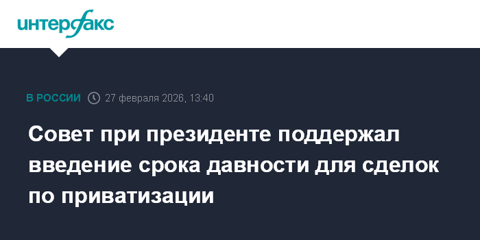 Совет при президенте поддержал введение срока давности для сделок по приватизации