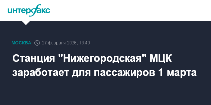 Станция "Нижегородская" МЦК заработает для пассажиров 1 марта