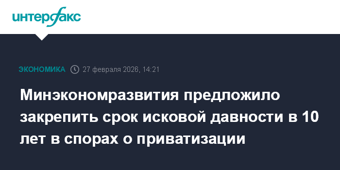 Минэкономразвития предложило закрепить срок исковой давности в 10 лет в спорах о приватизации