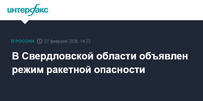 Москва. 27 февраля. INTERFAX.RU - В Свердловской области объявлен режим ракетной опасности, сообщил губернатор Денис Паслер.