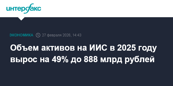 Москва. 27 февраля. INTERFAX.RU - Объем активов на индивидуальных инвестиционных счетах (ИИС) в 2025 году увеличился до 888,3 млрд рублей с 594,6 млрд рублей, говорится в обзоре Банка России.