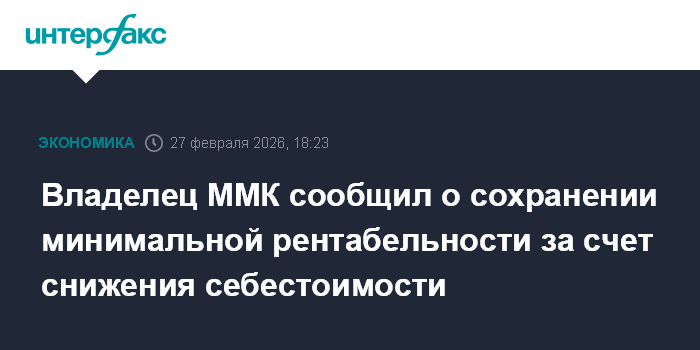 Москва. 27 февраля. INTERFAX.RU - Магнитогорский металлургический комбинат сумел сохранить минимальную рентабельность только за счет мер по снижению себестоимости, сказал журналистам владелец ММК Виктор Рашников.