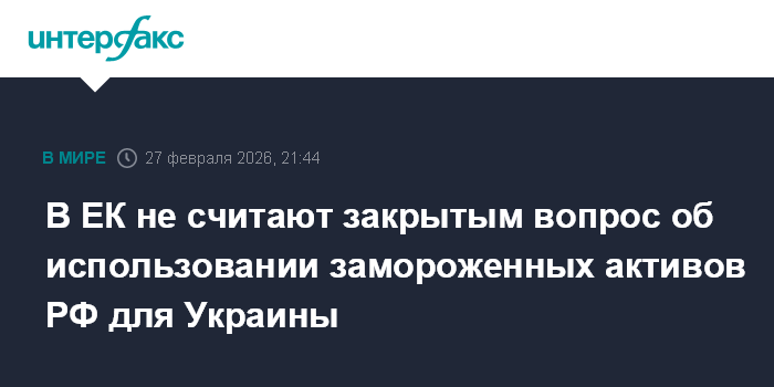 Москва. 27 февраля. INTERFAX.RU - Позиция Еврокомиссии (ЕК) по использованию замороженных активов РФ для Украины существенно отличается от заявления главы МИД Германии Йоханна Вадефуля, считающего, что вопрос снят с повестки дня ЕС, заявил представитель ЕК Балаш Уйвари.