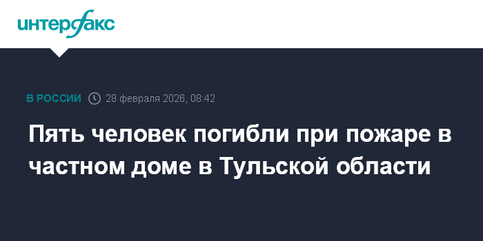 Москва. 28 февраля. INTERFAX.RU - При пожаре в Плавском районе Тульской области погибли пять человек, сообщает в субботу пресс-служба ГУ МЧС России по Тульской области.