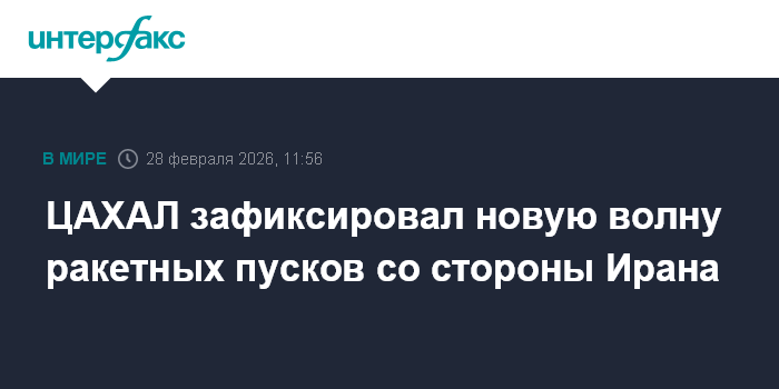 Москва. 28 февраля. INTERFAX.RU - Новая волна ракетных пусков была зафиксирована с территории Ирана в сторону Израиля, сообщает Армия обороны Израиля (ЦАХАЛ).