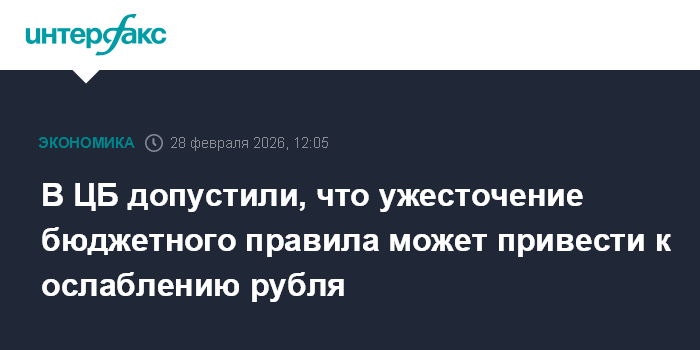 В ЦБ допустили, что ужесточение бюджетного правила может привести к ослаблению рубля