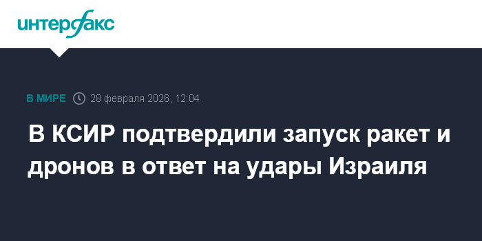 Москва. 28 февраля. INTERFAX.RU - Корпус стражей исламской революции (КСИР) подтвердил нанесение ударов по территории Израиля в ответ на израильскую атаку по стране, сообщают в субботу ближневосточные СМИ.